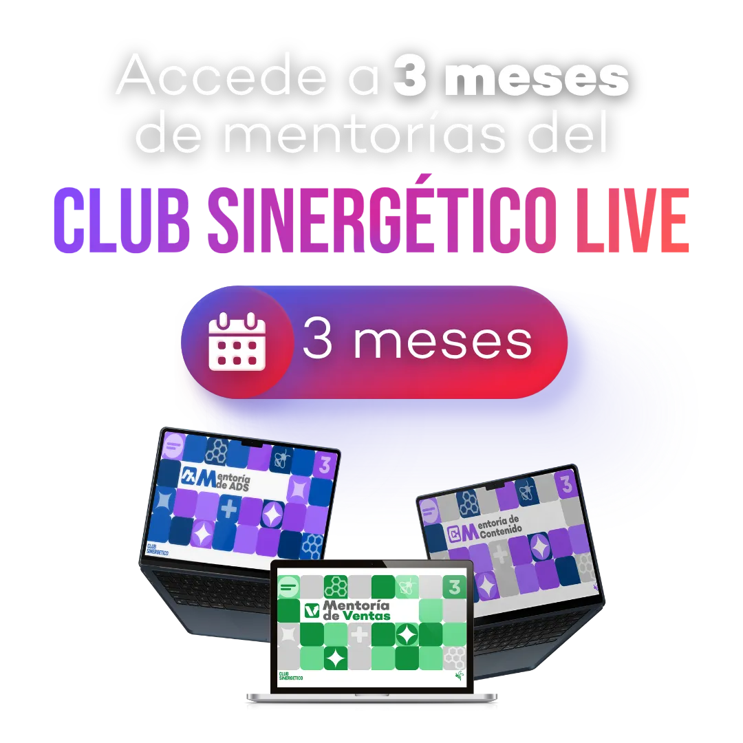 Accede a clases en vivo con tus mentores y especialistas en liderazgo, pauta digital, monetización, ADN de marca y automatización de ventas.